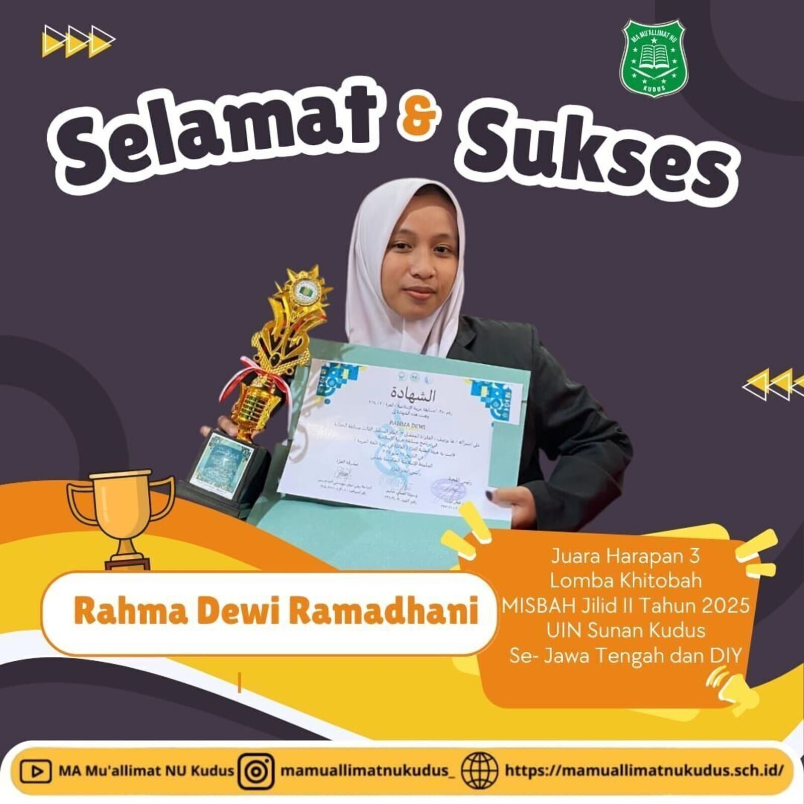 Rekapitulasi jejak prestasi santriwati MA Mu'allimat NU Kudus.